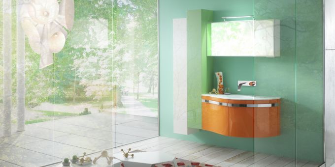 La vivacità del colore caratterizza questa soluzione d’arredo dal design minimal e sobrio.