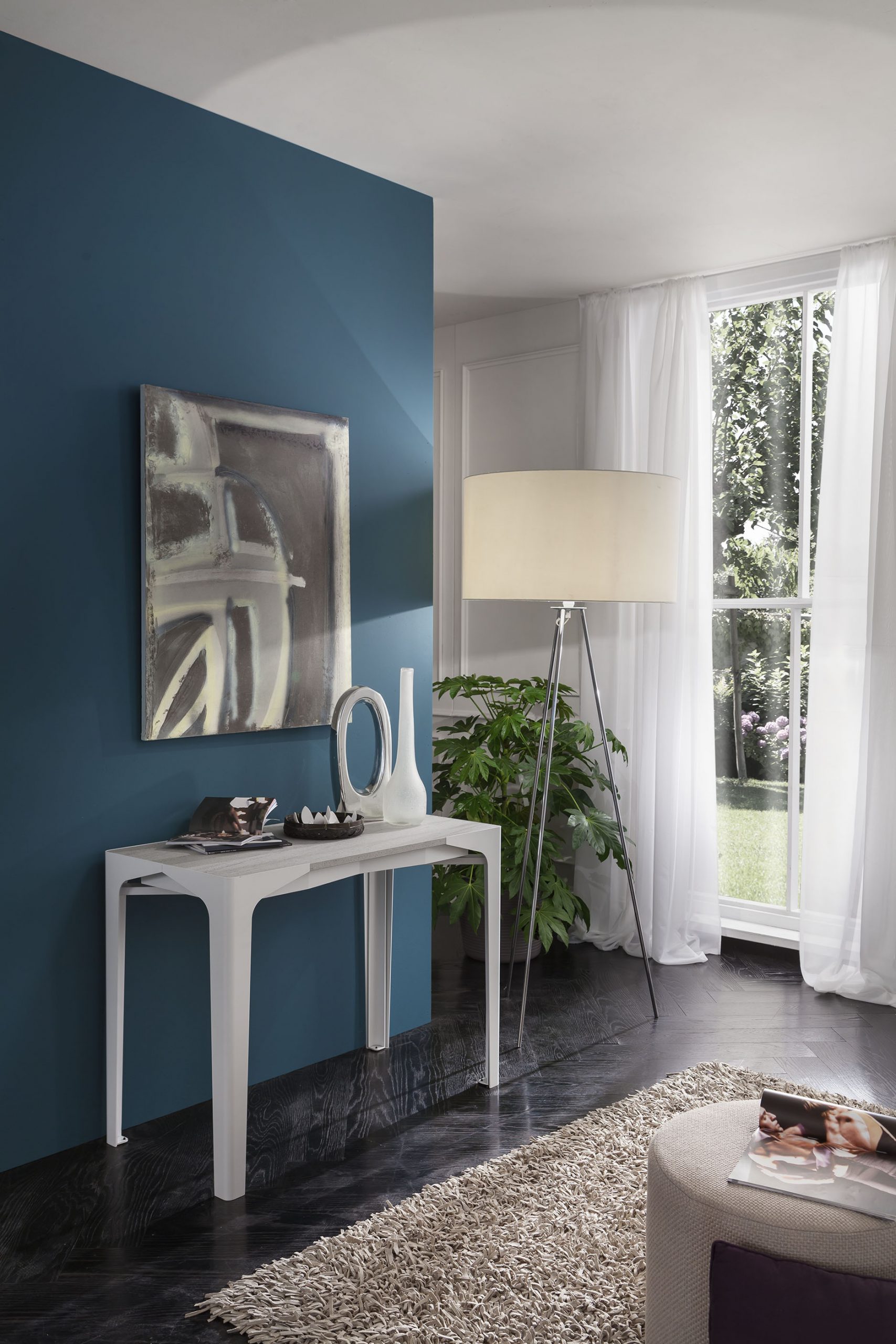 Tavolo Consolle Allungabile con gamba in acciaio verniciato a polveri epossidiche nelle colorazioni bianco, castoro e grigio londra.