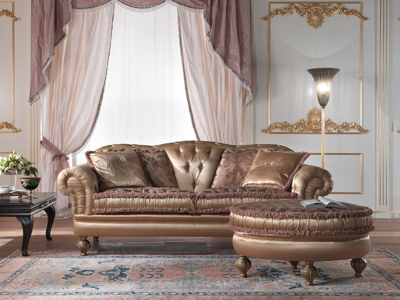 Eleganza ed estro caratterizzano questo divano, che conferisce all’ambiente signorilità e raffinatezza attraverso il colore e il design.