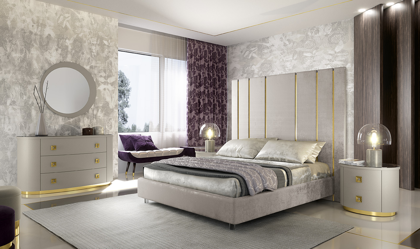 Sensualità, lusso, fascino ed eleganza sono i caratteri distintivi di questa camera da letto, che sembra nata per accogliere sogni e realizzarli.