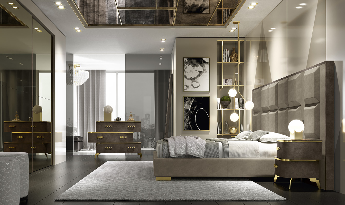 Una camera da letto di classe, che si arricchisce con materiali di pregio, giochi di luci e alternanze tra volumi che la rendono unica nel suo genere.