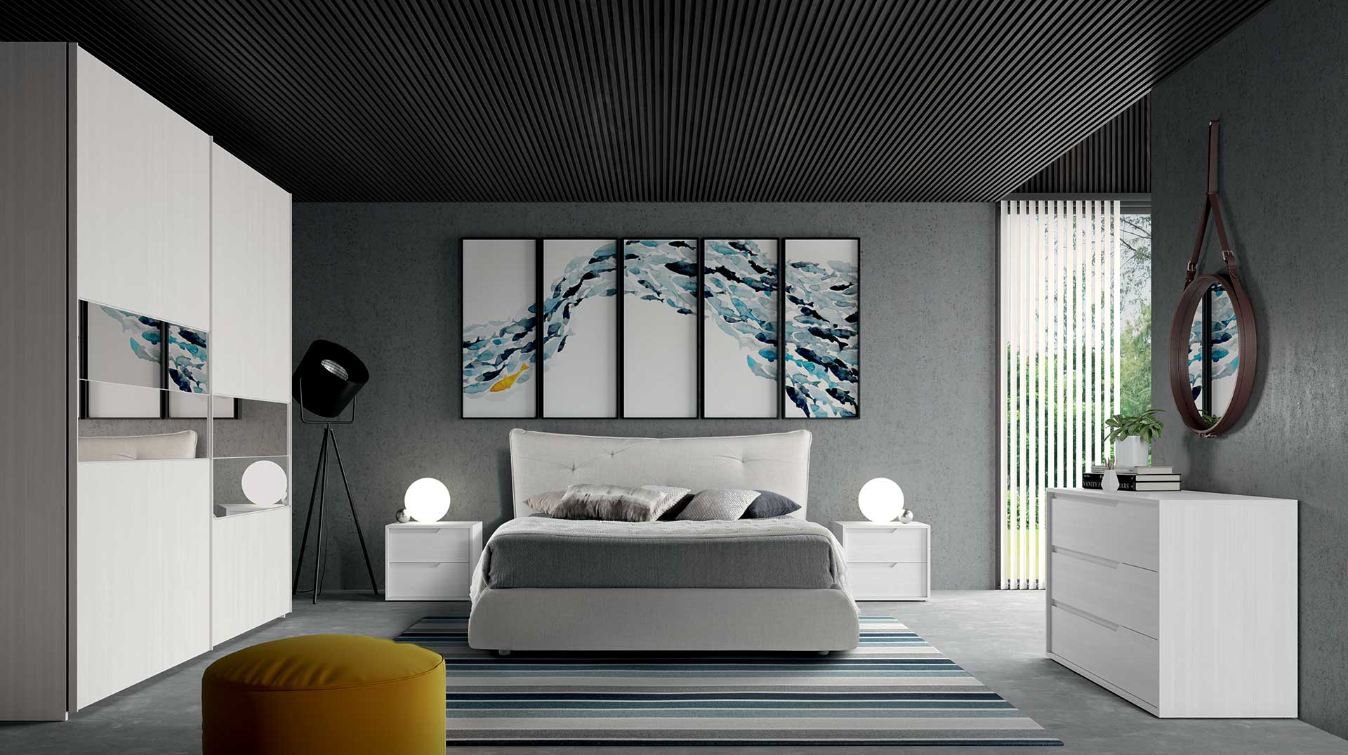 Camera da letto moderna dal design contemporaneo, in cui funzionalità e bellezza si uniscono per un unico fine: regalare momenti di relax.